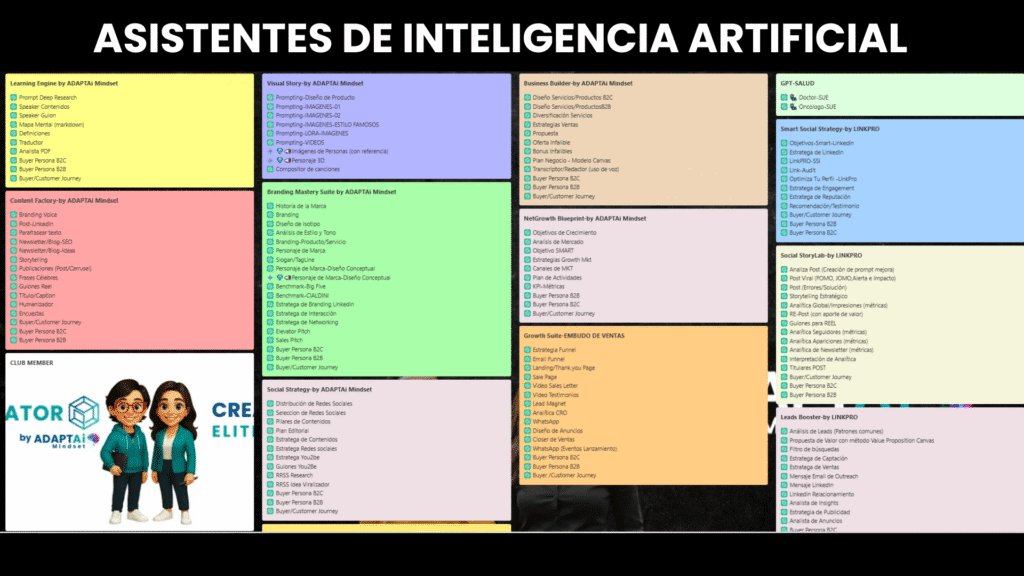 Con Creator PRO accedes a un pack de asistentes de IA diseñados para una temática específica, listos para ayudarte a crear, organizar y avanzar con claridad.