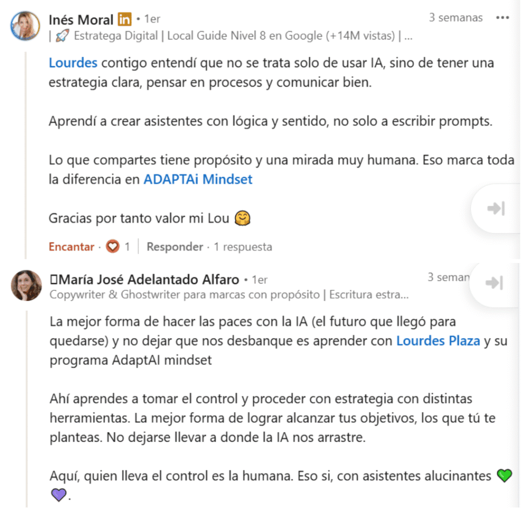Más de 900 personas ya han sido parte de esta evolución, aprendiendo a integrar la IA en su día a día sin necesidad de conocimientos técnicos, y logrando automatizar, posicionarse y liberar su tiempo para lo que realmente importa.